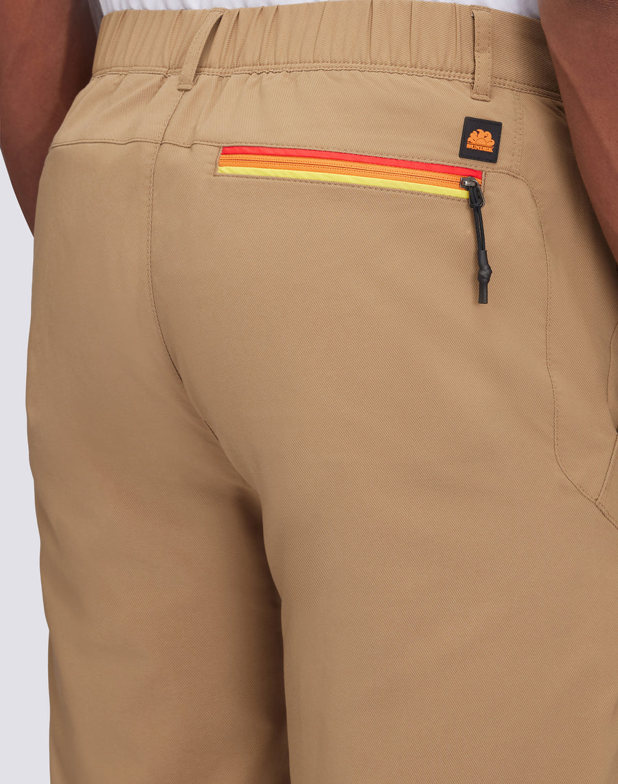 Men's long trousers in quick-drying polyester twill fabric. Semi-stretchy hybrids, they are a garment with a sporty character and a more technical connotation than the other models of Sundek men's trousers.