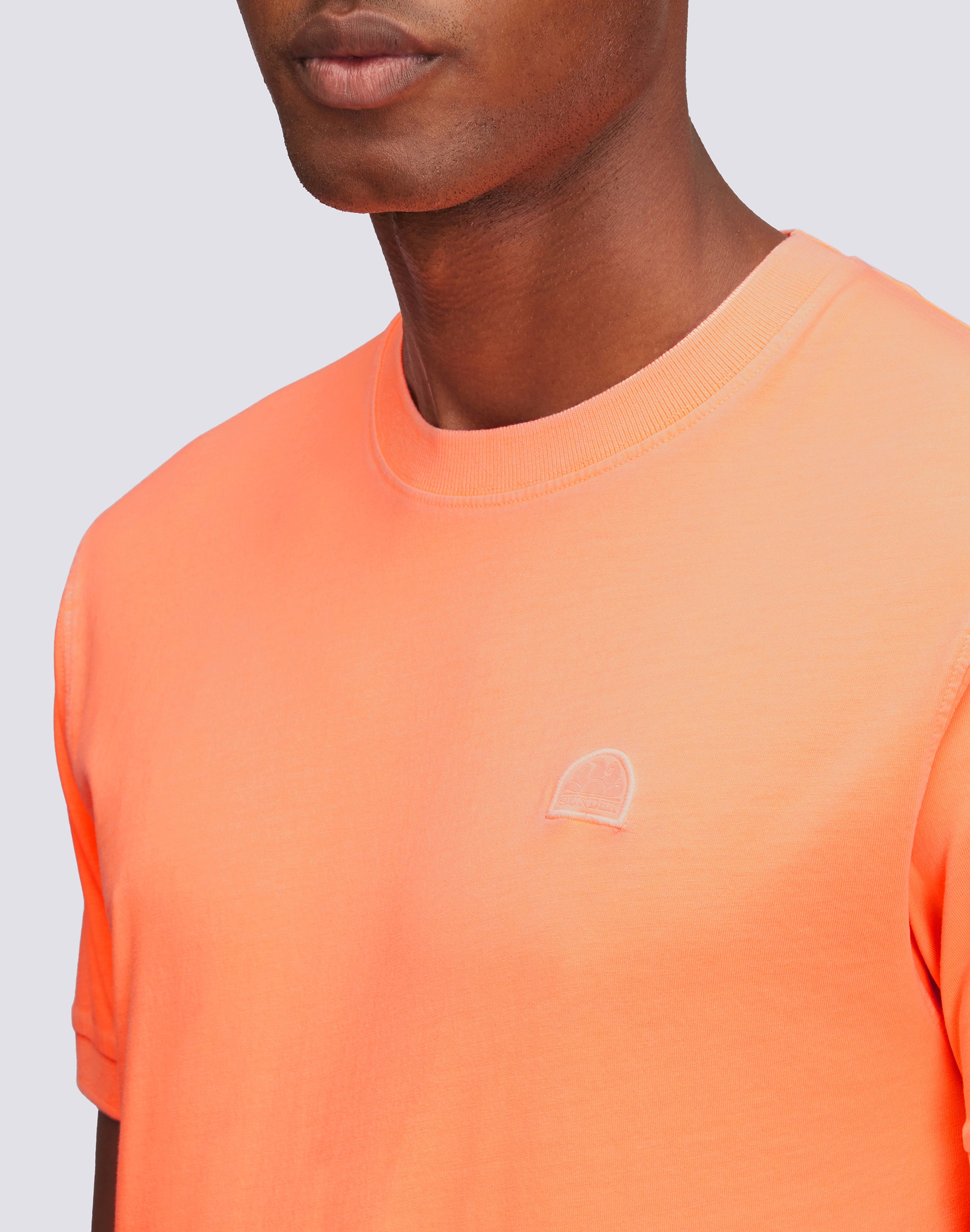 Unique color effect for this garment-dyed men's t-shirt. The matching logo patch makes the garment essential and refined. Don't miss the minimal and refined style of this garment-dyed model, perfect in your daily looks and even in the evening.
