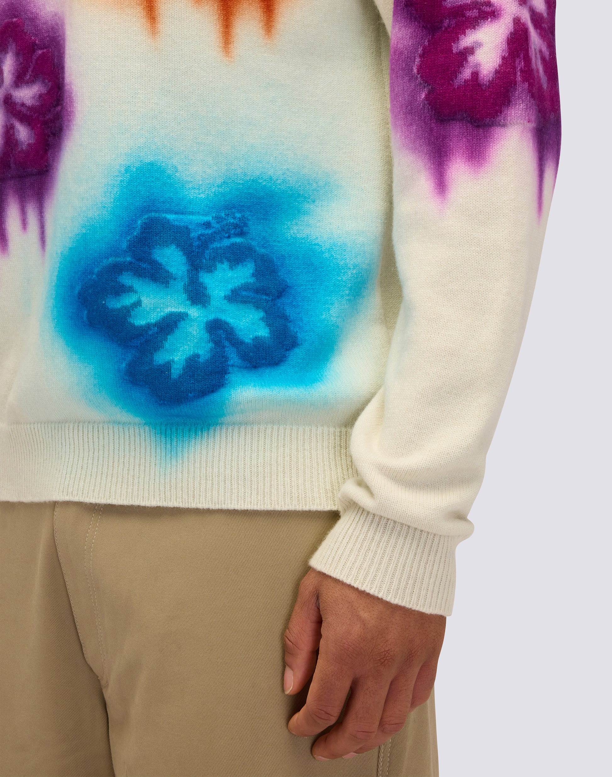 Discover this unisex crewneck sweater crafted from premium cashmere, hand-knitted with airbrushing. The floral inlay adds a refined and distinctive touch, transforming a classic garment into a one-of-a-kind piece. Soft and breathable, this sweater offers unparalleled comfort and style, ideal for those seeking elegance and quality in every detail.