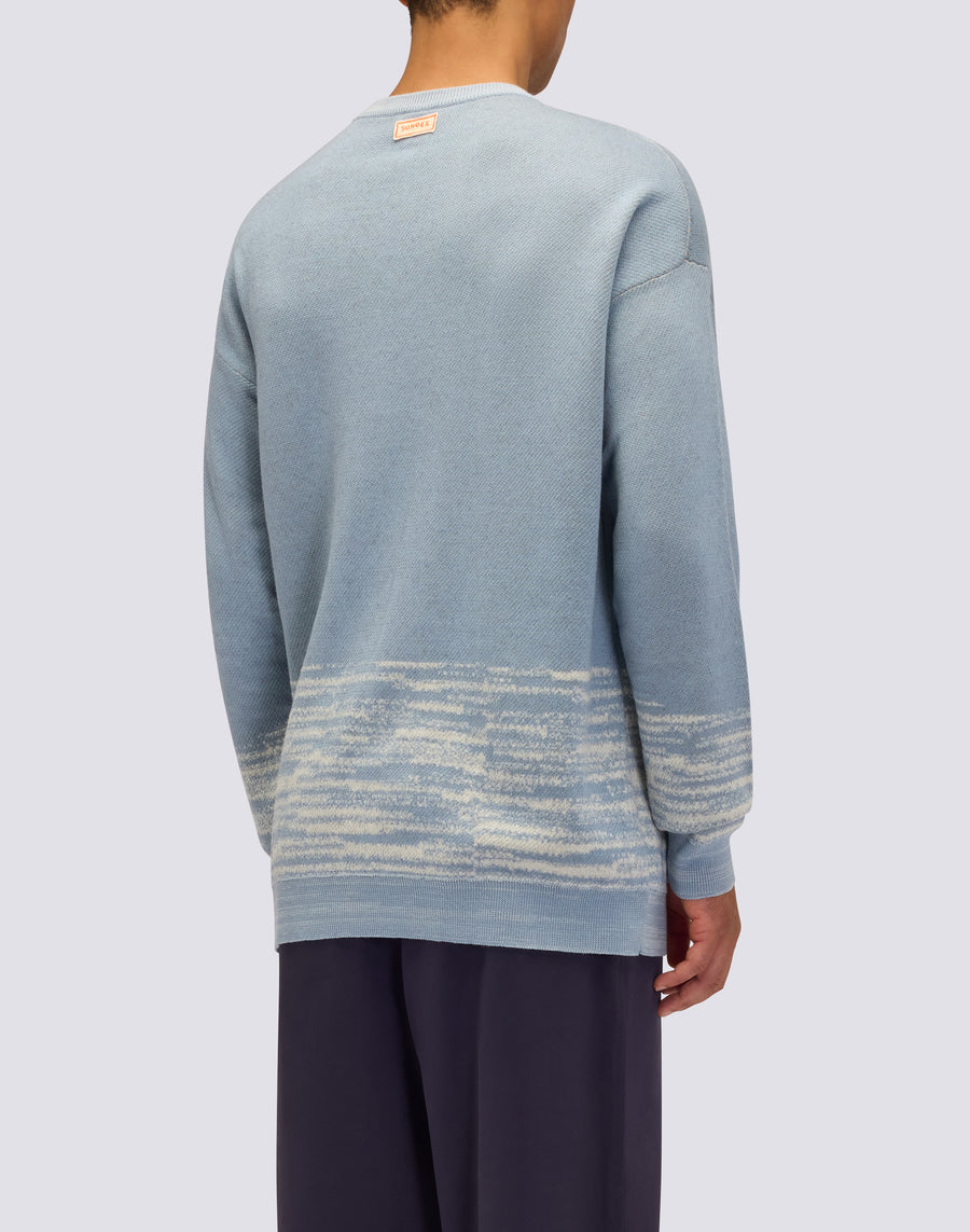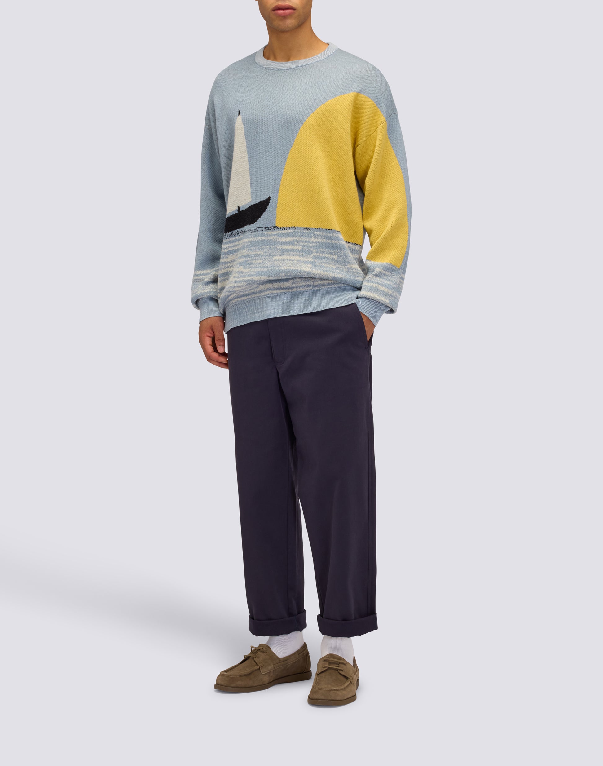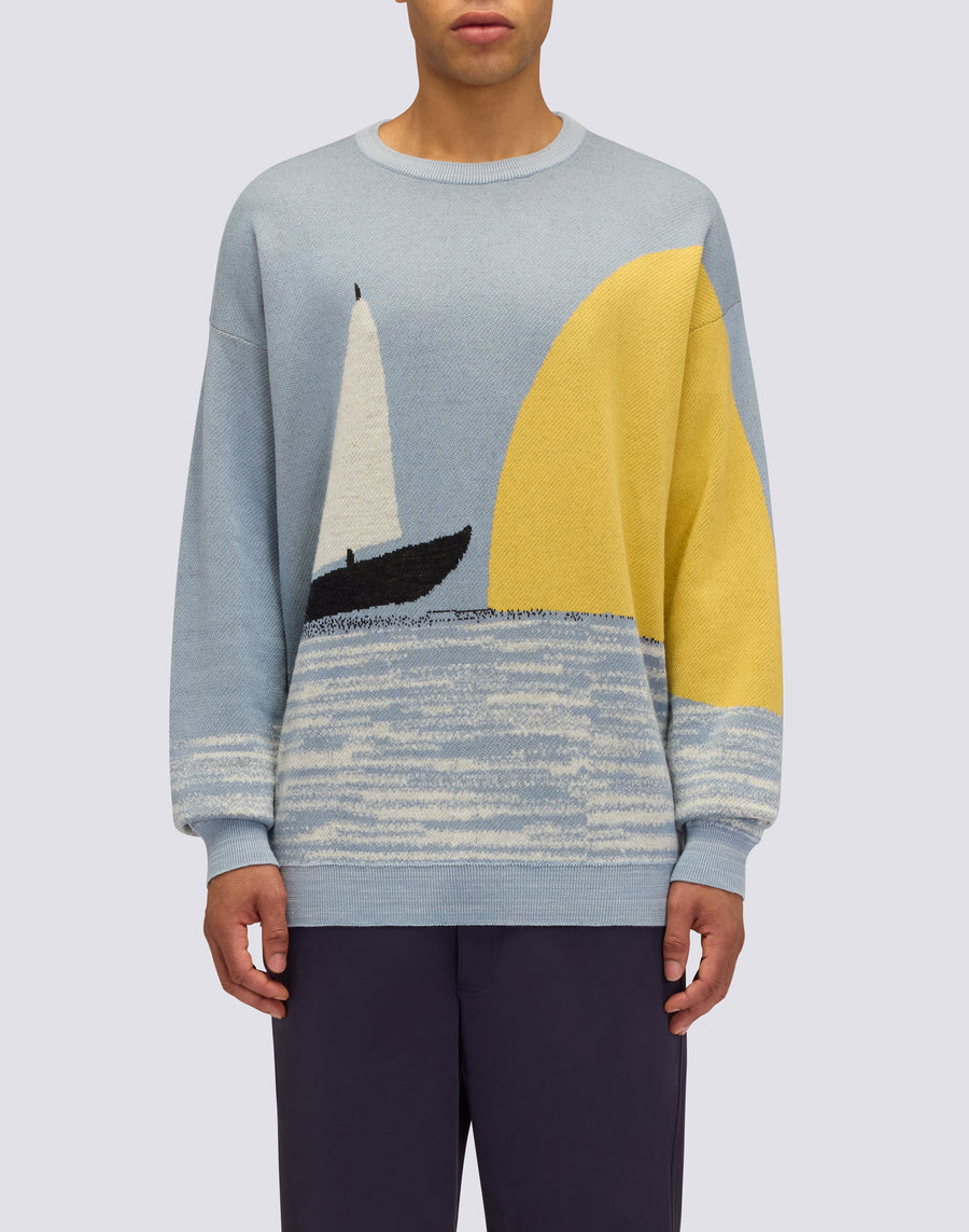 MEN'S CREW-NECK JACQUARD SWEATER WITH BOAT IN THE MIDDLE OF THE SEA DESIGN