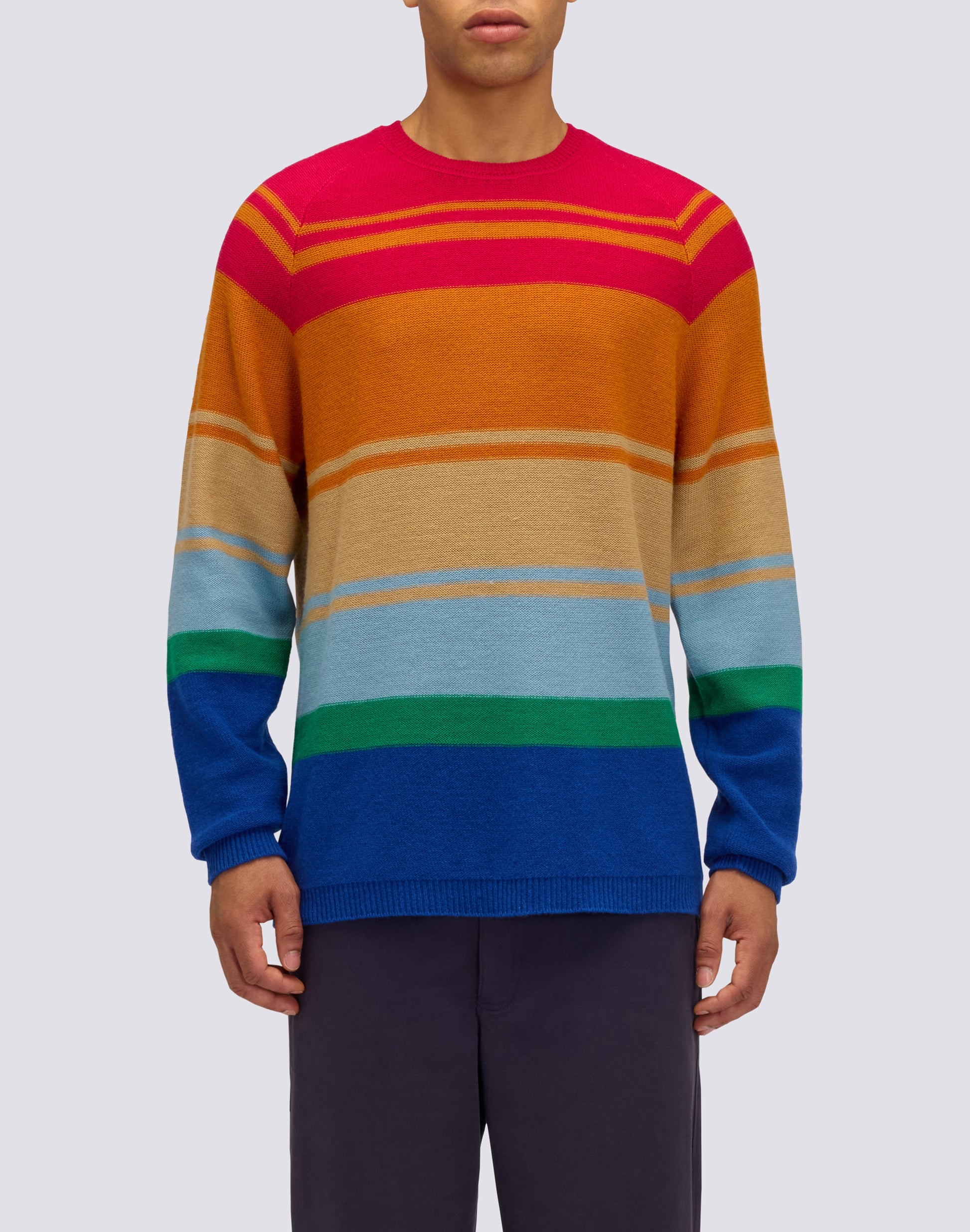 UNISEX MULTI-STRIPE CREW NECK SWEATER