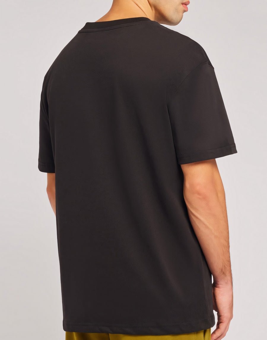 Men's crew-neck T-shirt in soft cotton jersey, with rubberized patch on chest. Loose fit. Perfect as the star of casual outfits.