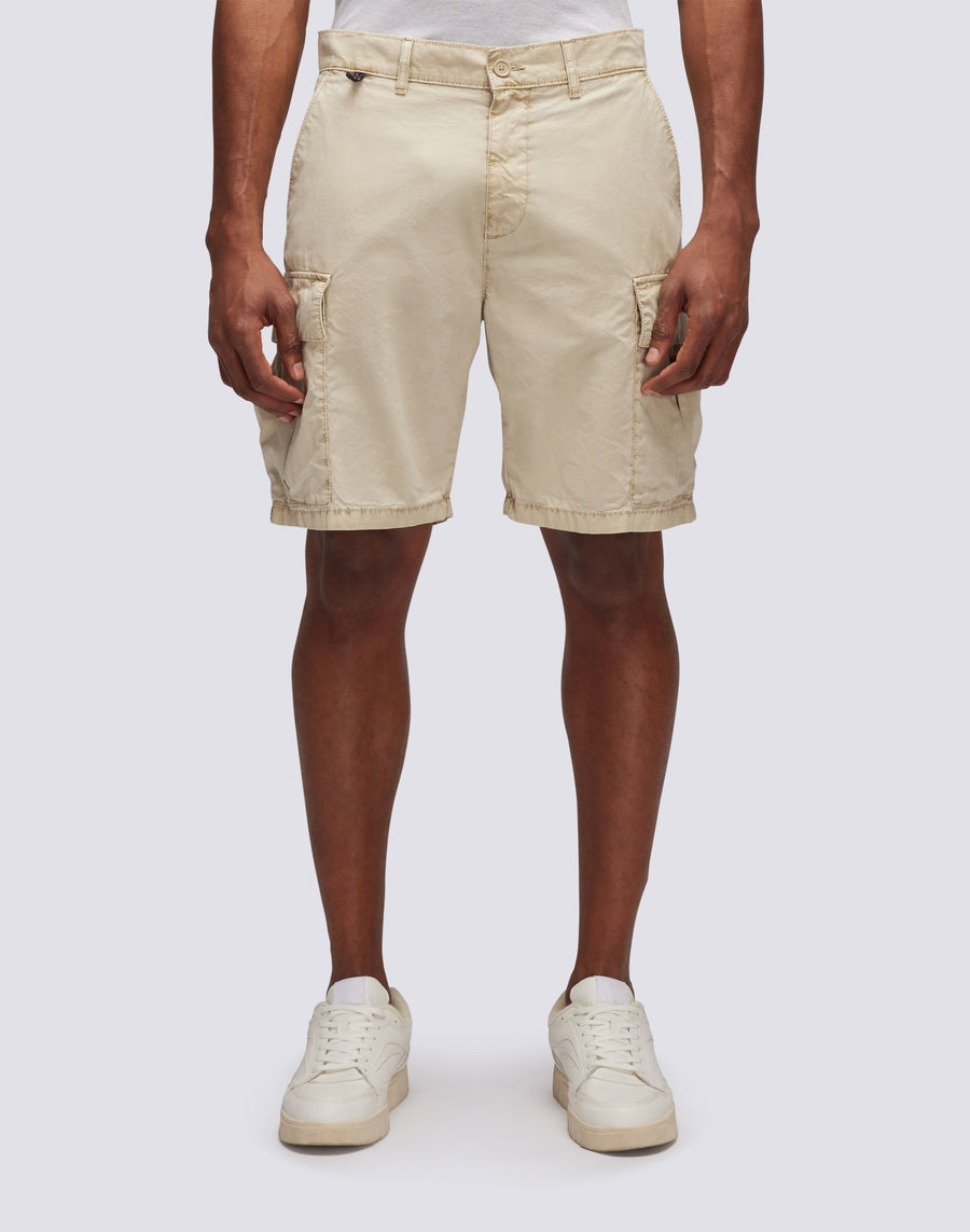 Choose everyday comfort with garment-dyed cotton cargo shorts. Equipped with side pockets, button closure and loops, they are functional and practical, suitable for different occasions. The iconic Sundek rainbow in nylon fabric crosses the back, adding style to these men's shorts.
