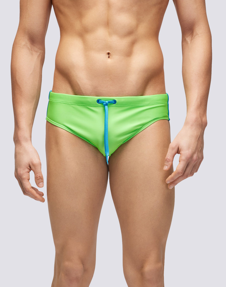 Men's swim briefs with an adjustable waist with drawstring and contrasting drawstring: it is a timeless model but with a twist given by our iconic roaring sun printed on the back, in step with the times because it is eco-sustainable thanks to the regenerated ECONYL® Made in Italy fabric. You can wear it both for swimming and for sunbathing and tanning.