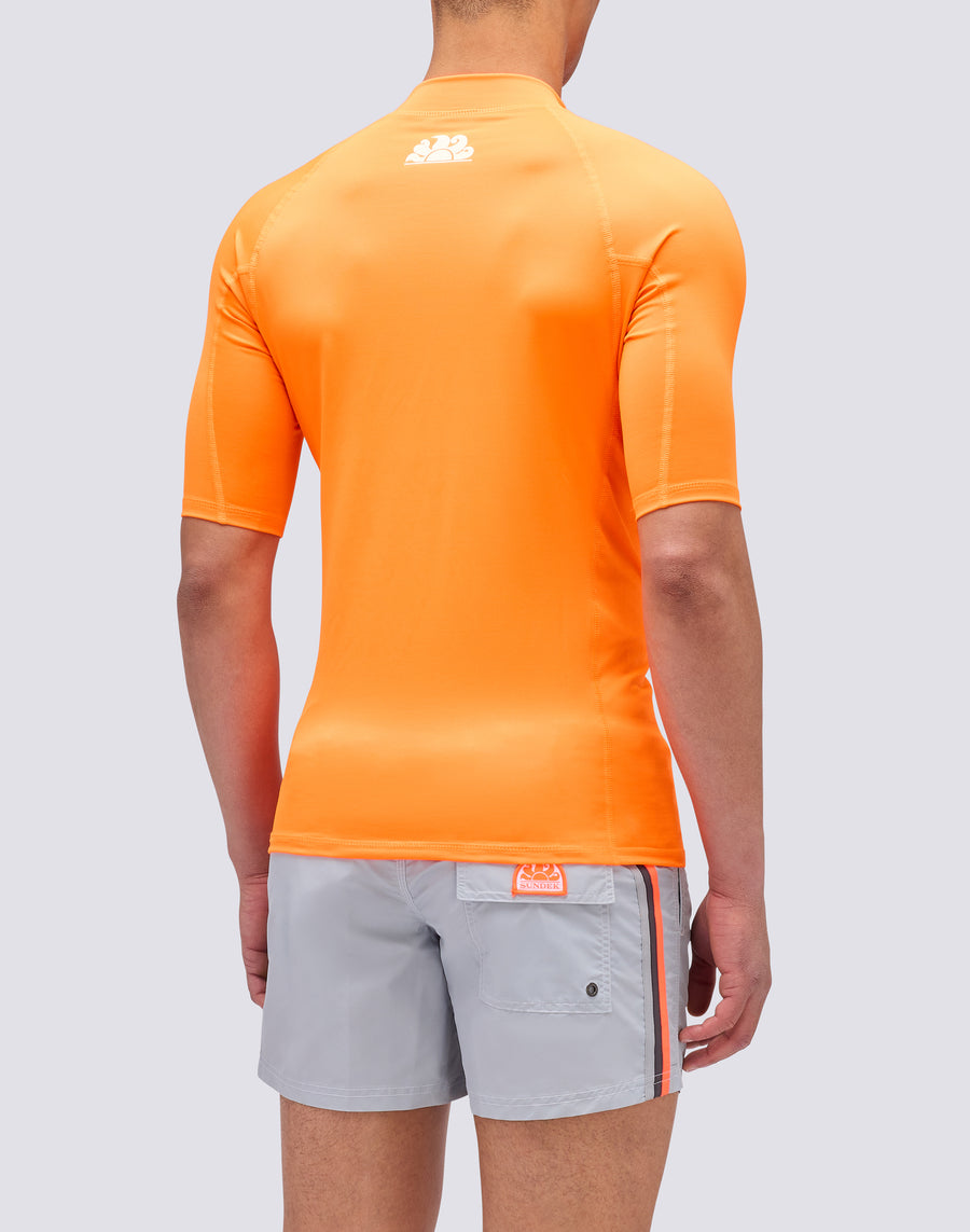 Short-sleeved, lightweight and stretchy rashguard: combines 50+ sun protection, grip and maximum freedom of movement. The raglan sleeve offers room for manoeuvre for the shoulders and arms. It's a unisex model that you can use for swimming and especially when you're in the water for long periods of time for sports such as surfing or SUP: wear it to get the protection and comfort you seek from a rashguard.