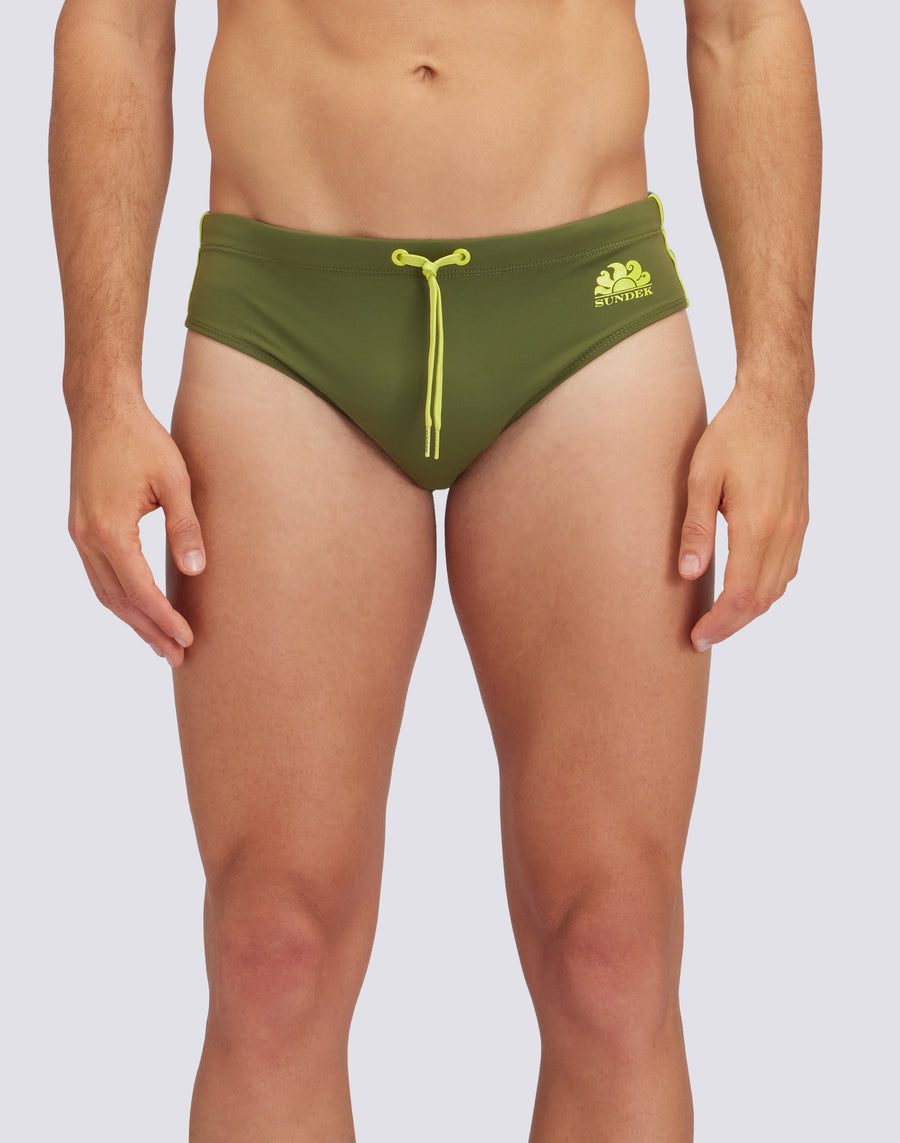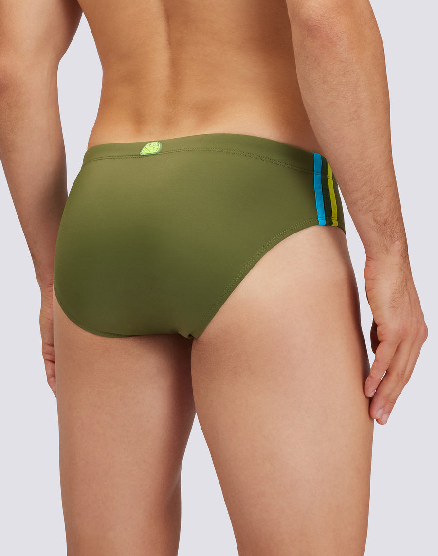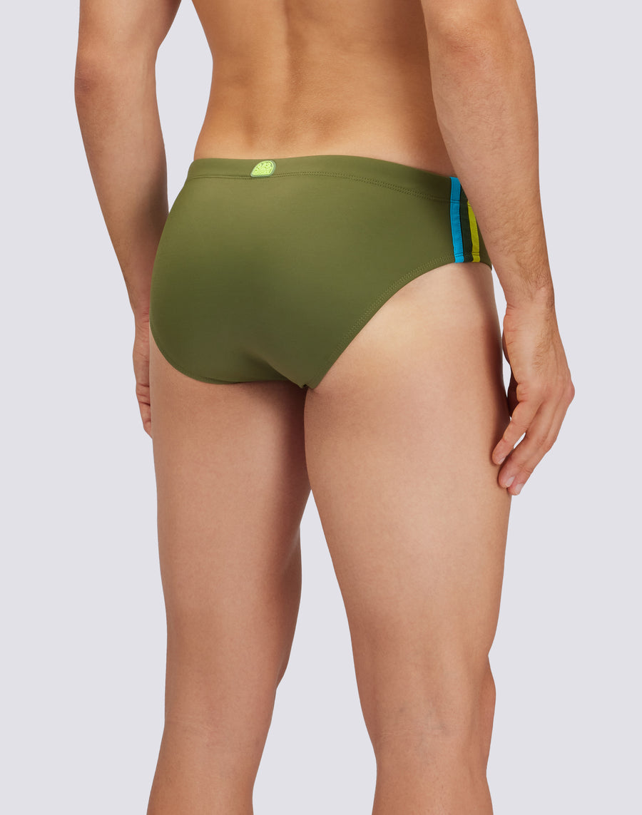Men's plain briefs with an adjustable waistband Monochrome swim briefs with a drawstring and three contrasting stripes down the sides, combining bold style with functionality. Designed to dry quickly, they ensure comfort and durability in and out of the water.