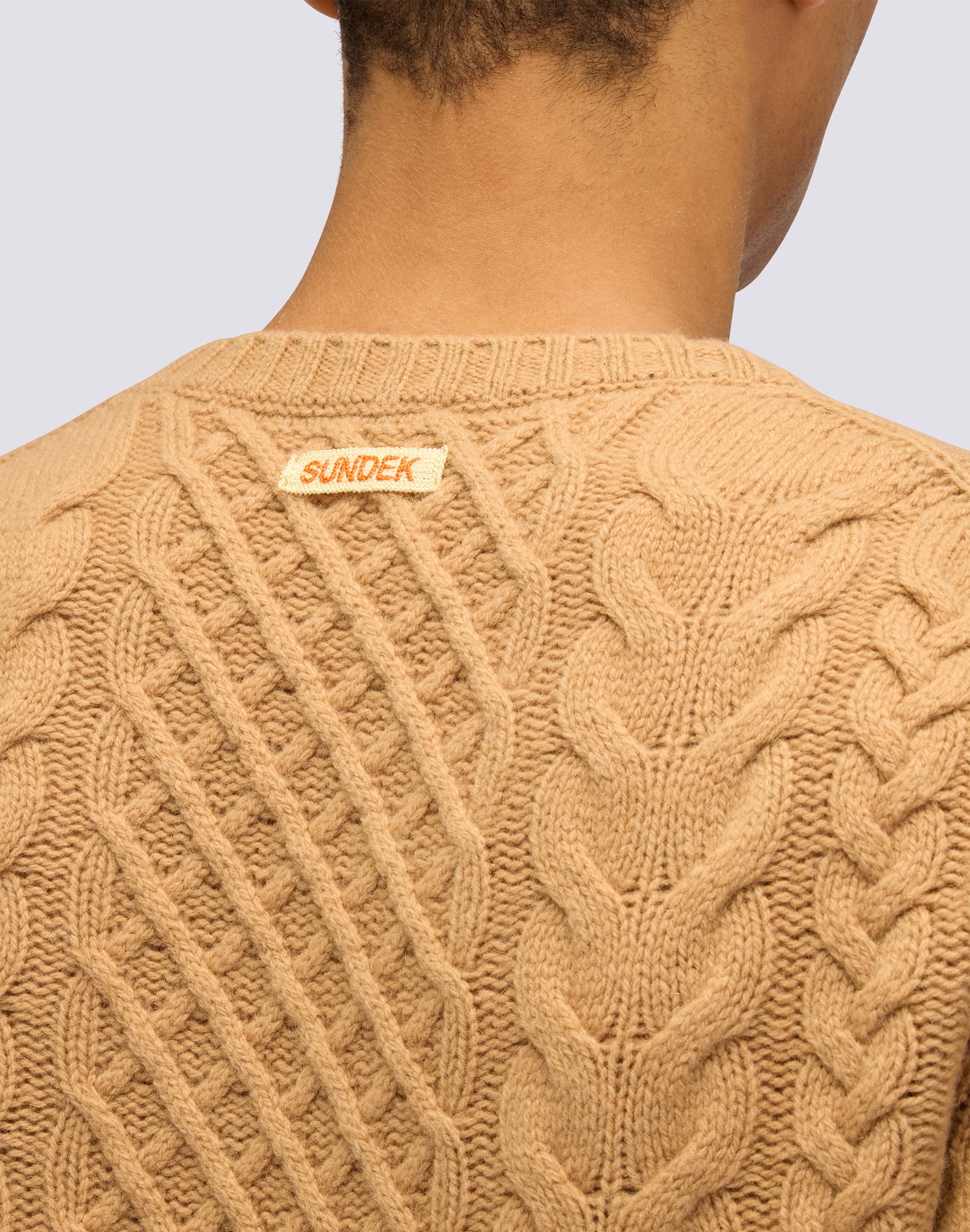 Men's crewneck sweater in a cashmere blend with a cable knit pattern; ideal for both casual and more elaborate outfits.