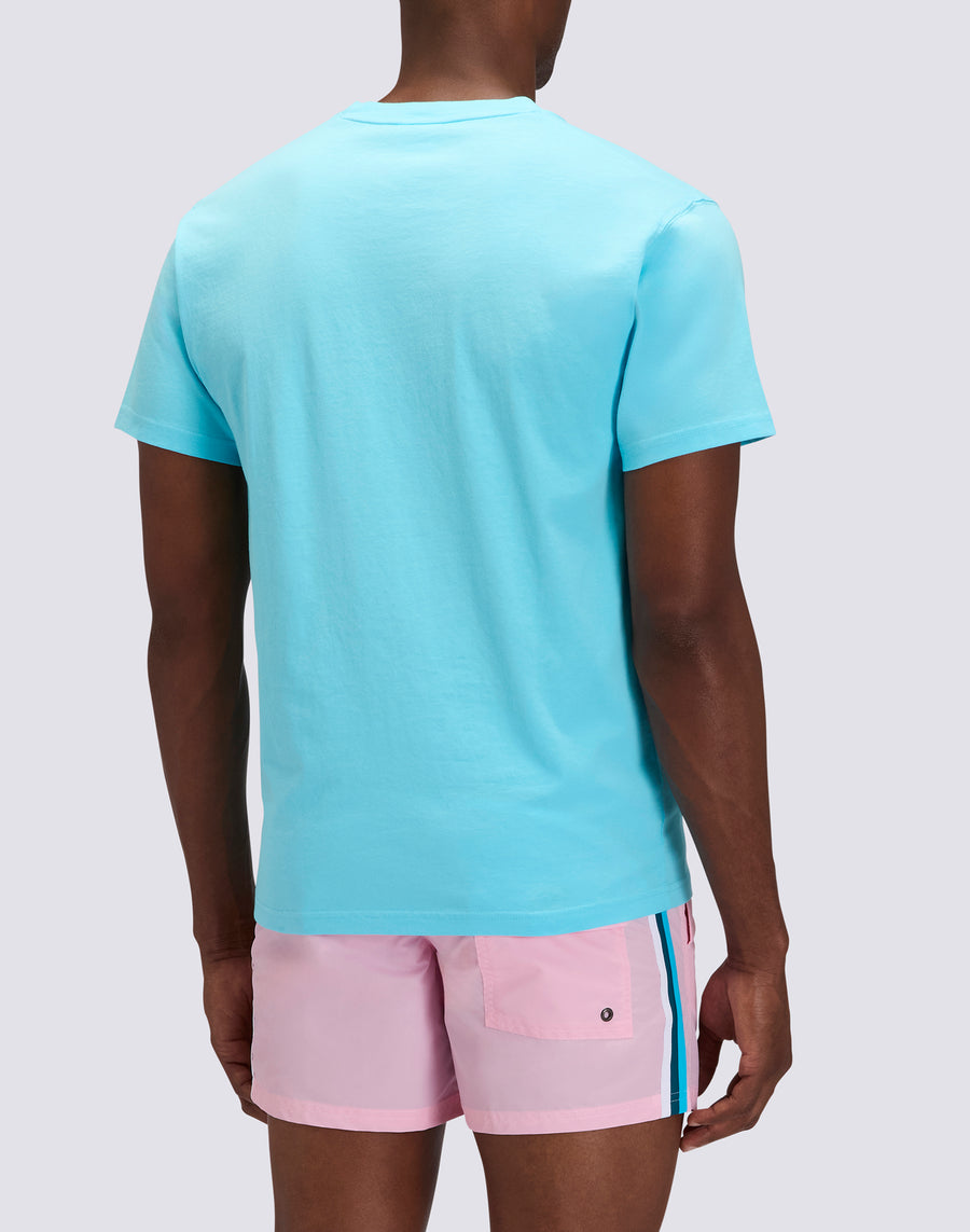 Men's cotton T-shirt with short sleeves and mini palm print and embroidered SUNDEK 1958 lettering.