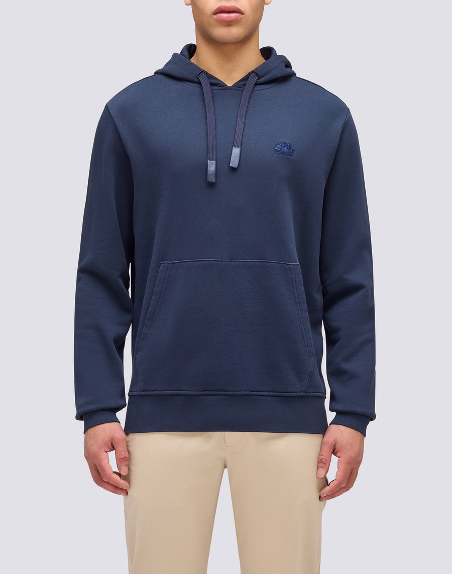 Men's hooded sweatshirt with pouch pocket in cotton. Regular fit. Knitted cuffs and hem.