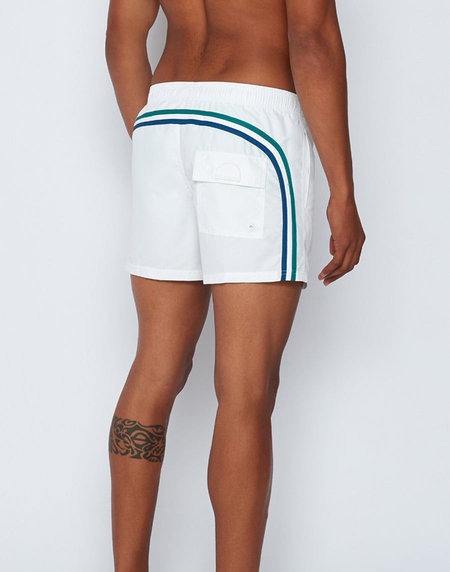It's fun, it's bright, and it loves the environment: the rainbow men's swimsuit is made from REPREVE® polyester made from recycled plastic bottles. Sustainability and performance go hand in hand because it is a lightweight fabric that dries quickly. In addition, the three-needle stitching that finishes the pattern ensures durability. To pack right away.