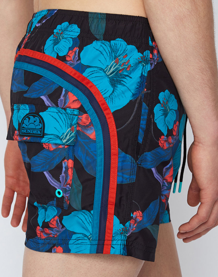 With green fabric, a flower-inspired design and the iconic Sundek rainbow on the back, this swimsuit is a beach must-have: thanks to its recycled REPREVE® fabric, made from plastic bottles, it is lightweight, durable and dries quickly.