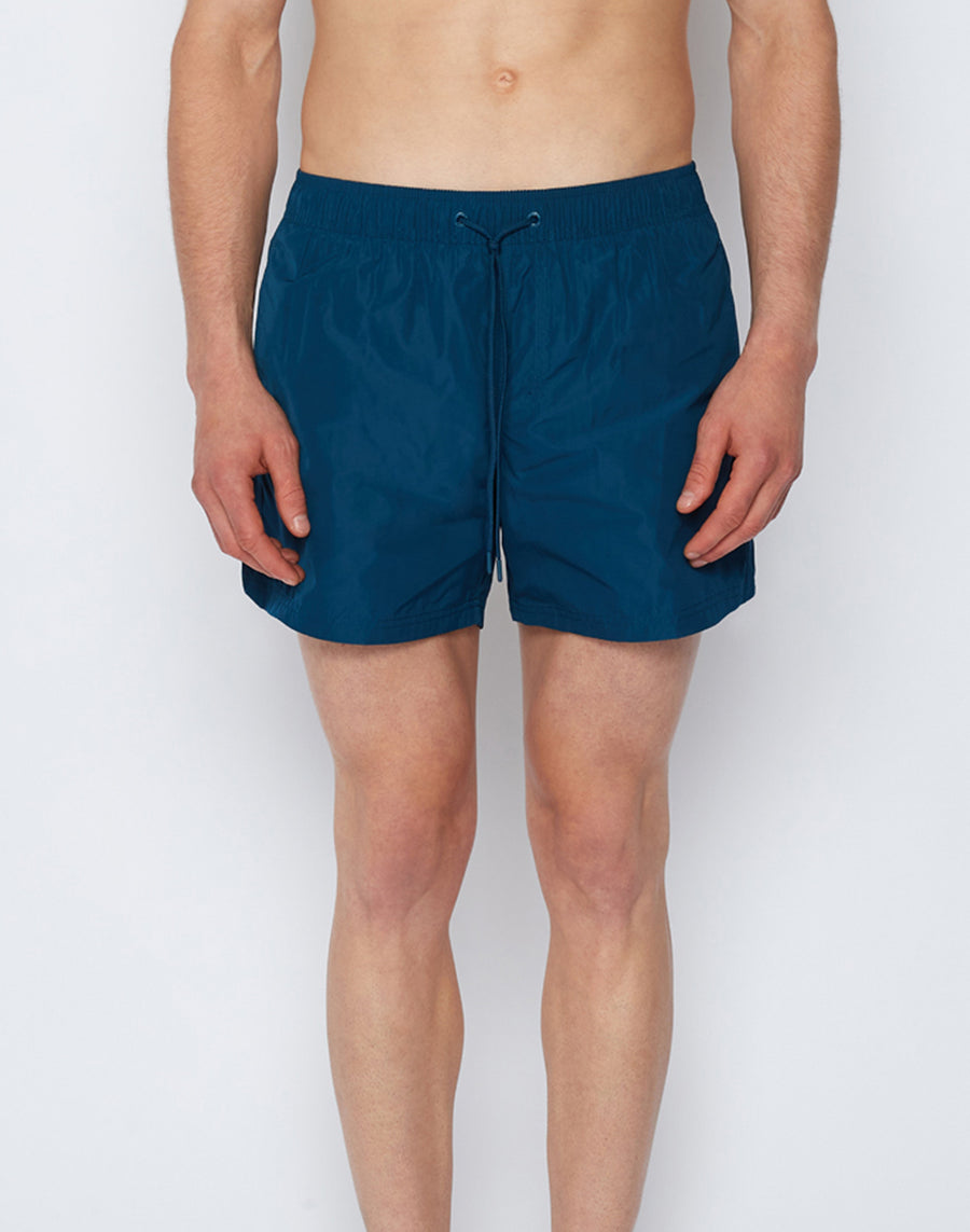 Plain-coloured short men's swimming costume with bright colours and a heat-sealed zip detail that closes the back pocket. Lightweight, durable, dries very quickly and is made of polyester memory, a technical fabric that retains its shape over time. It has our classic three-needle stitching for durability and our iconic rainbow on the back.