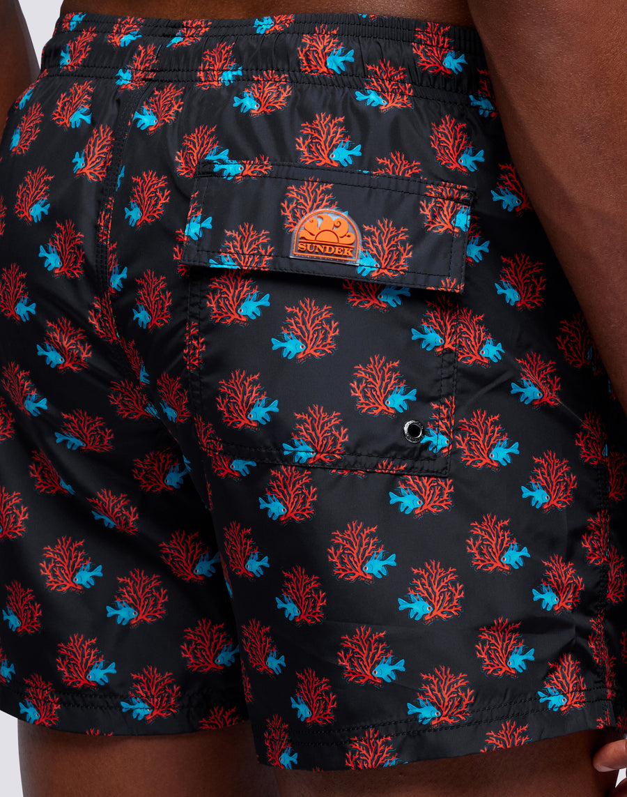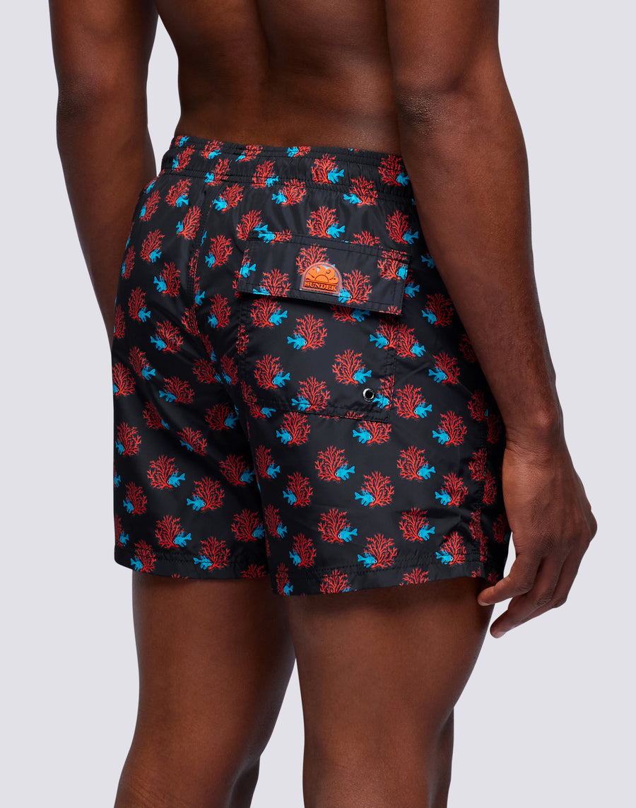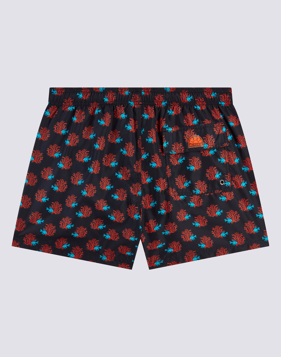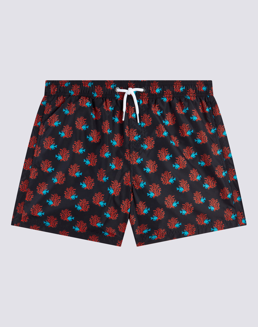 Swim trunks with elasticated drawstring waistband, in lightweight recycled polyester fabric. Seabed print. Outseam length 14"/35 cm (size m).