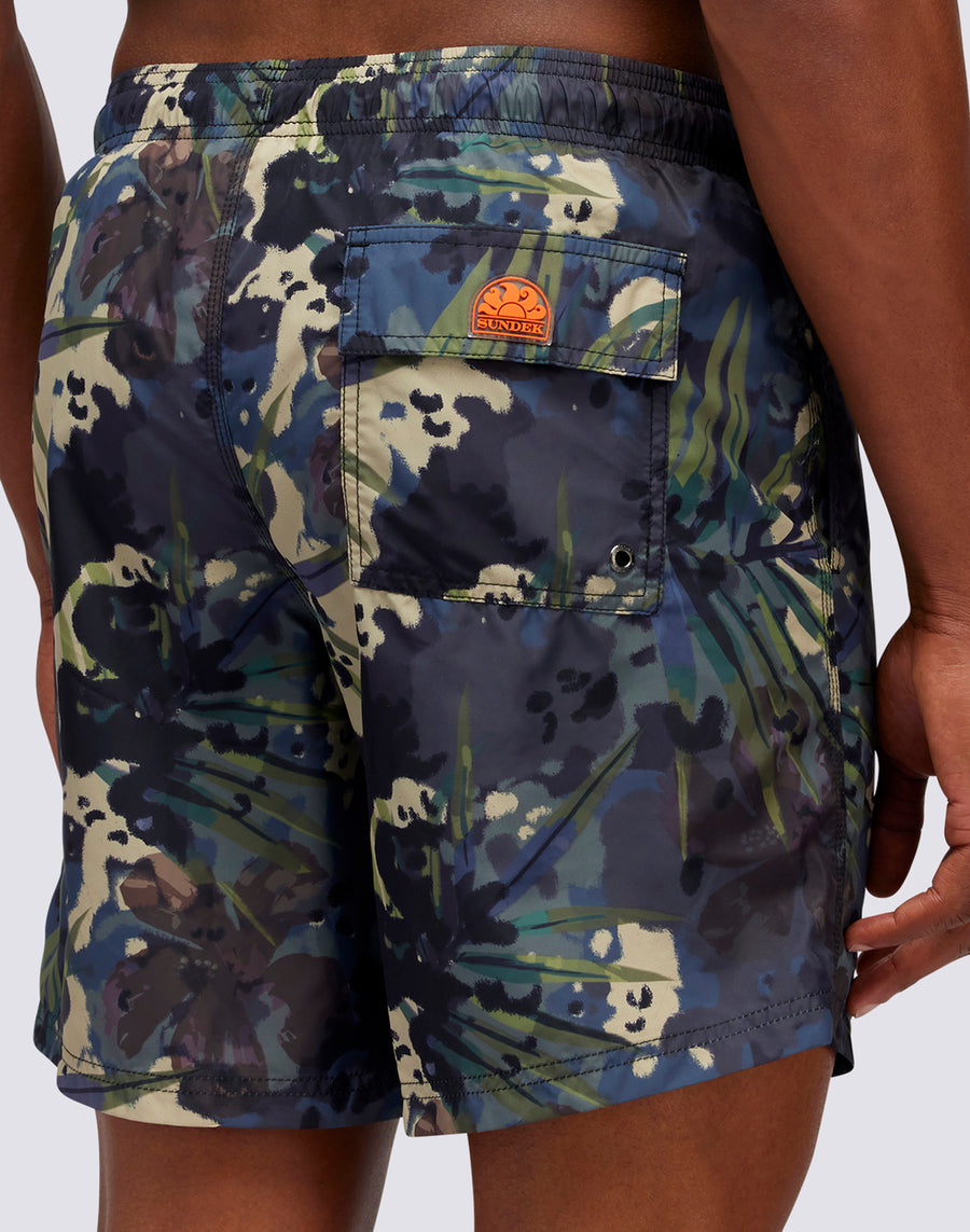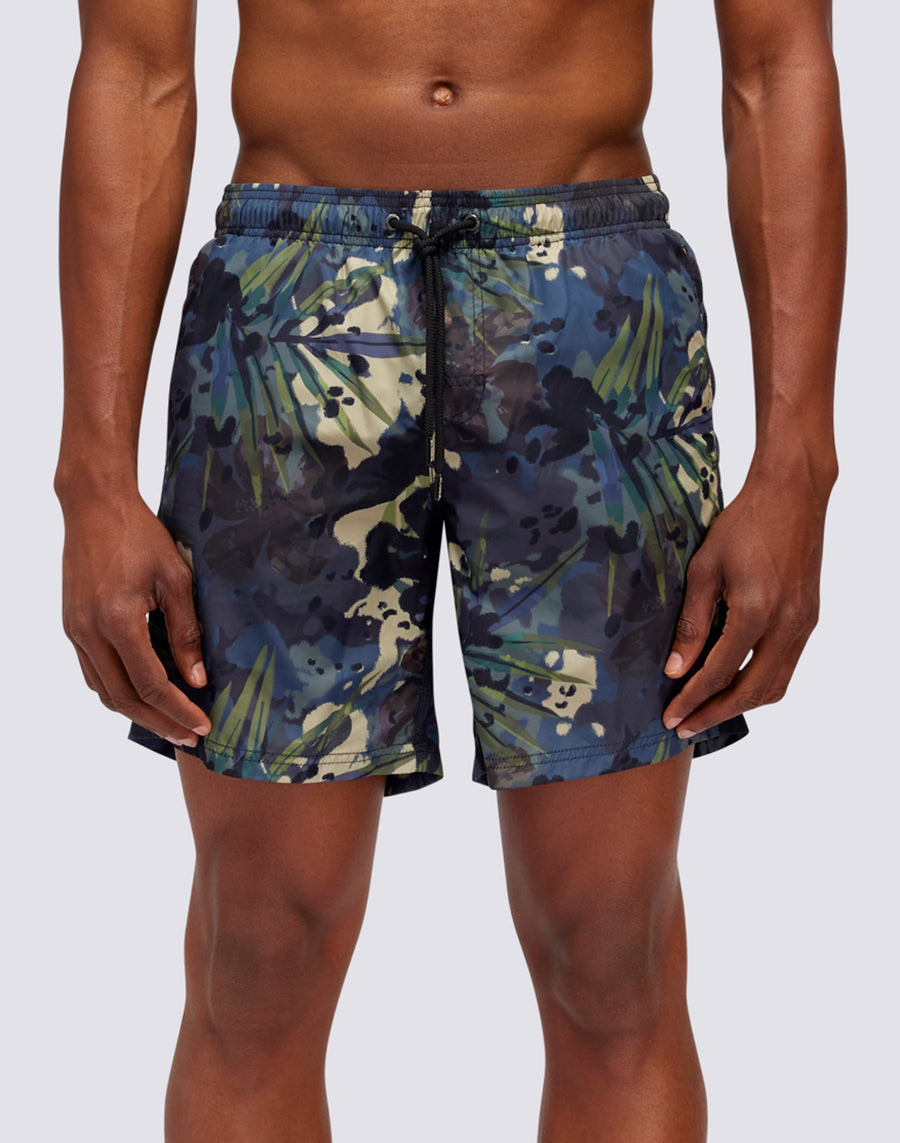 Ready to ride the next wave in this mid-length men's boardshort with elasticated waist and Spotty Jungle print. Made of recycled polyester, it guarantees adherence and comfort thanks to the presence of the drawstring and the elastic waistband. Length 16”/41 cm (in size M).