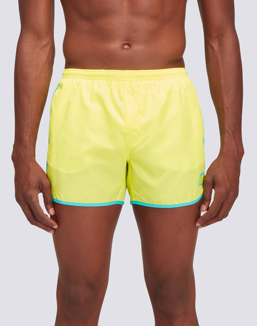 SHORT SWIMSHORTS WITH ELASTIC WAIST AND ROUND SIDE SLITS