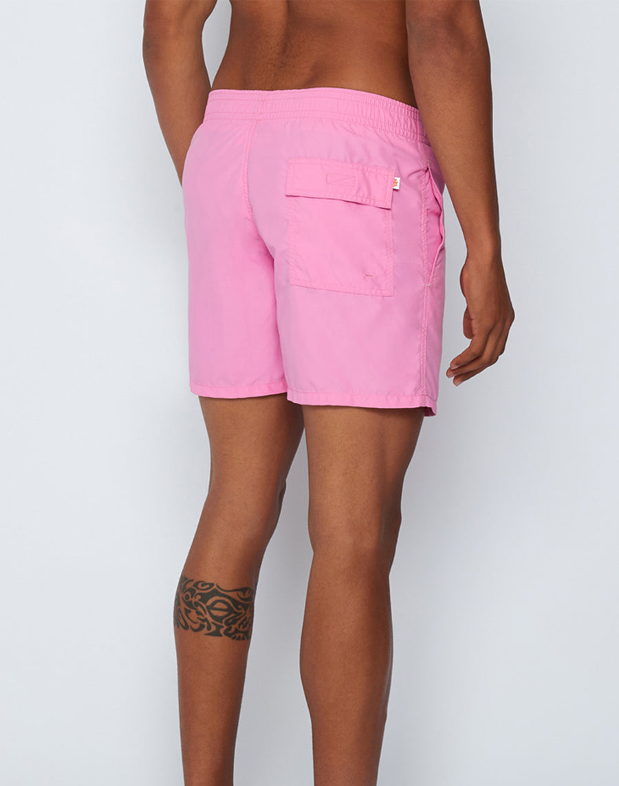 Men's medium length swimming costume with elasticated waist. Lightweight, durable, quick-drying and keeps its shape over time thanks to the technical micropeach nylon fabric. It features our classic three-needle stitching for increased tensile strength.