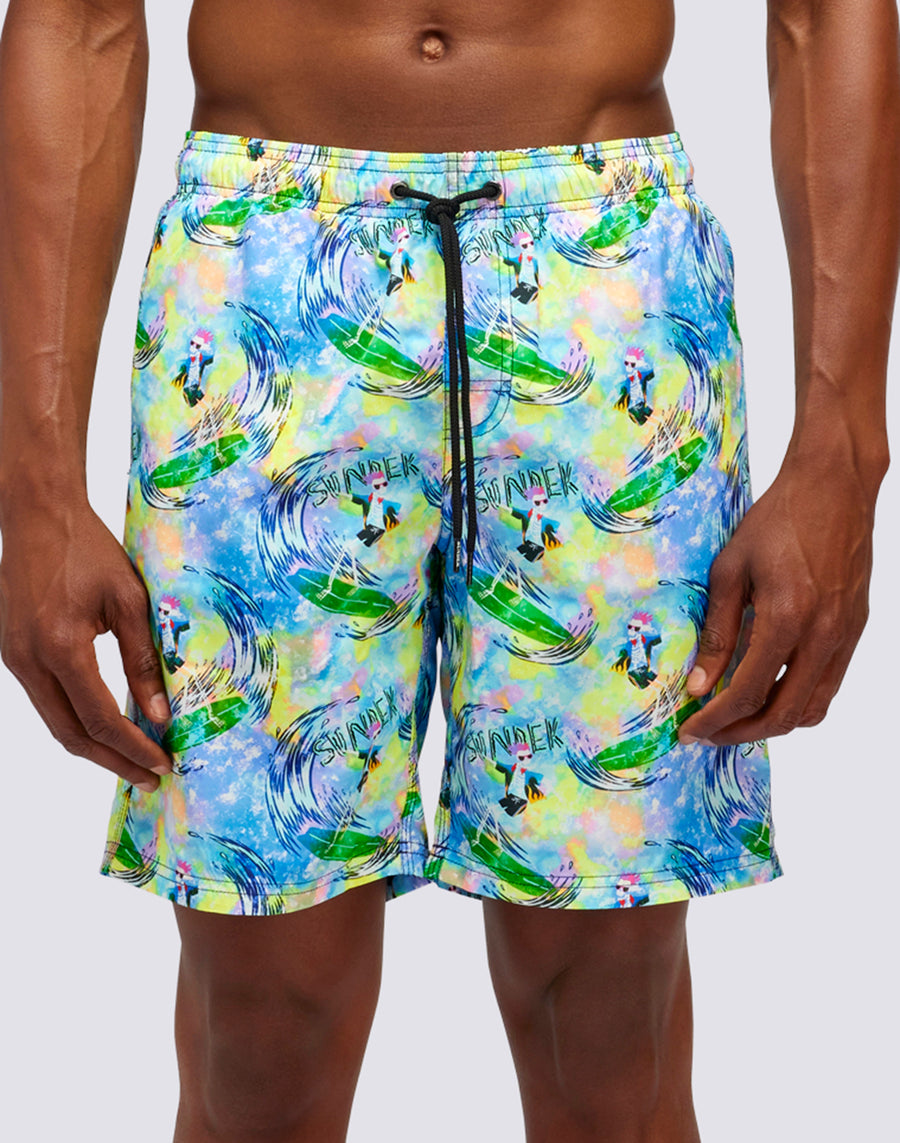 LONG ELASTIC WAIST SWIMSHORTS WITH FLY&DYE PRINT