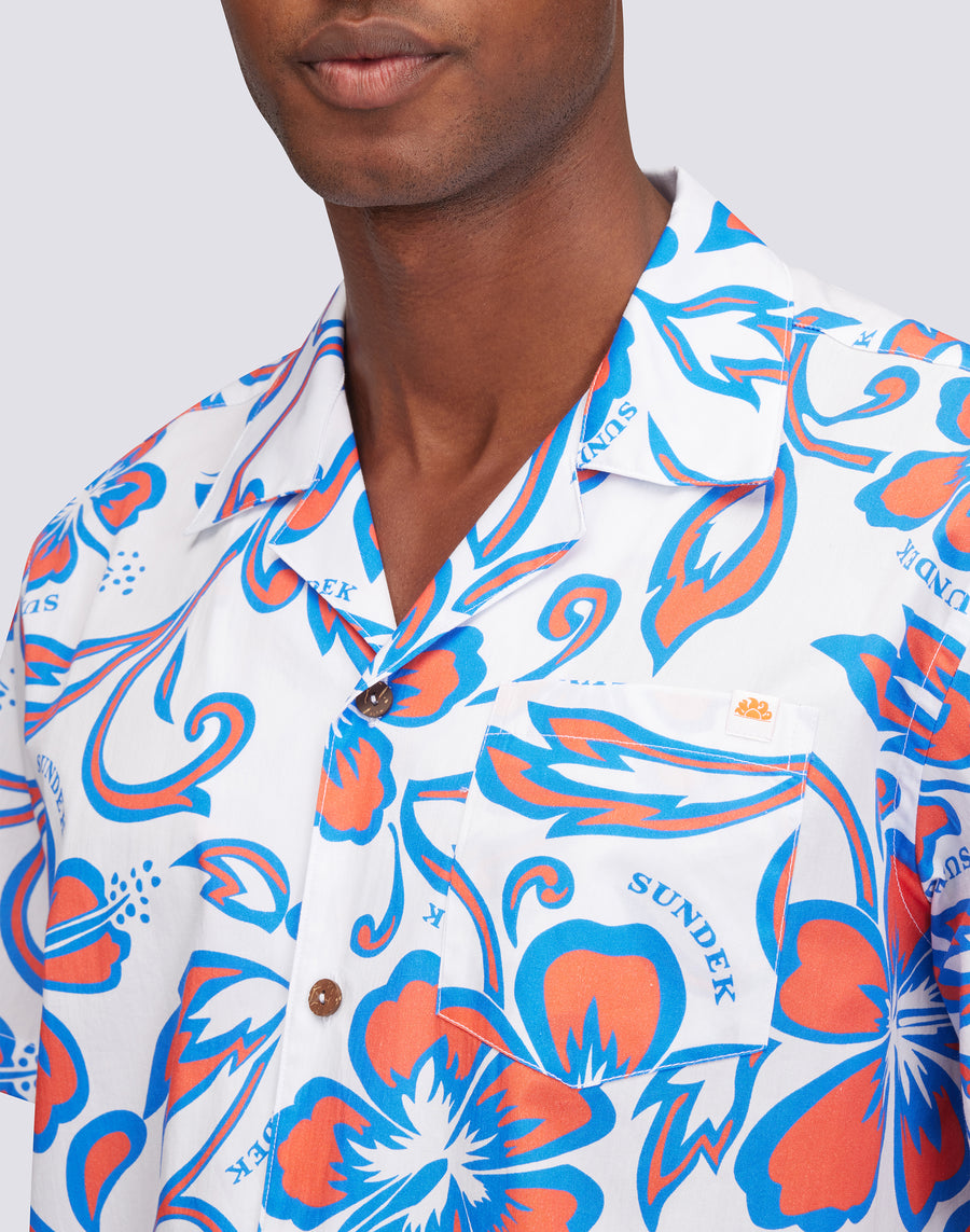 Short sleeved printed bowling shirt, made of cotton fabric.