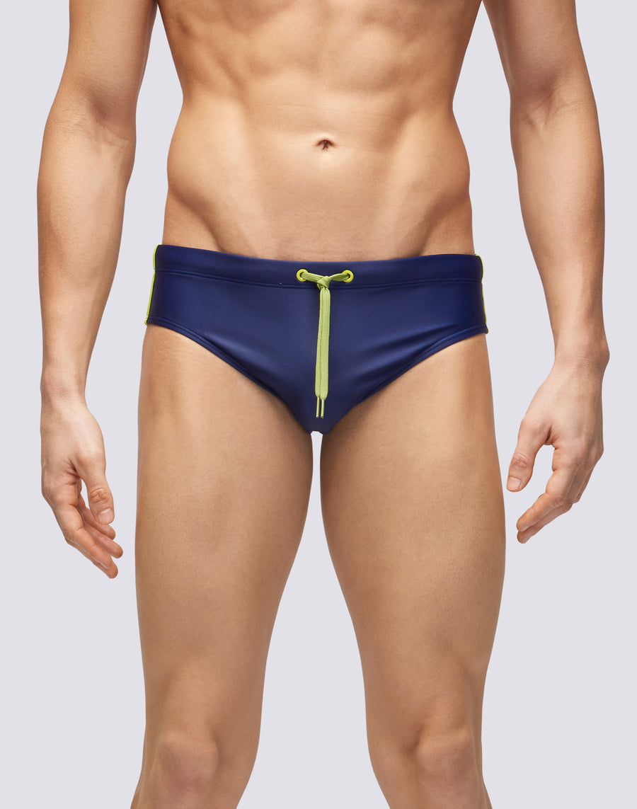 Men's swim briefs with an adjustable waist with drawstring and contrasting drawstring: it is a timeless model but with a twist given by our iconic roaring sun printed on the back, in step with the times because it is eco-sustainable thanks to the regenerated ECONYL® Made in Italy fabric. You can wear it both for swimming and for sunbathing and tanning.