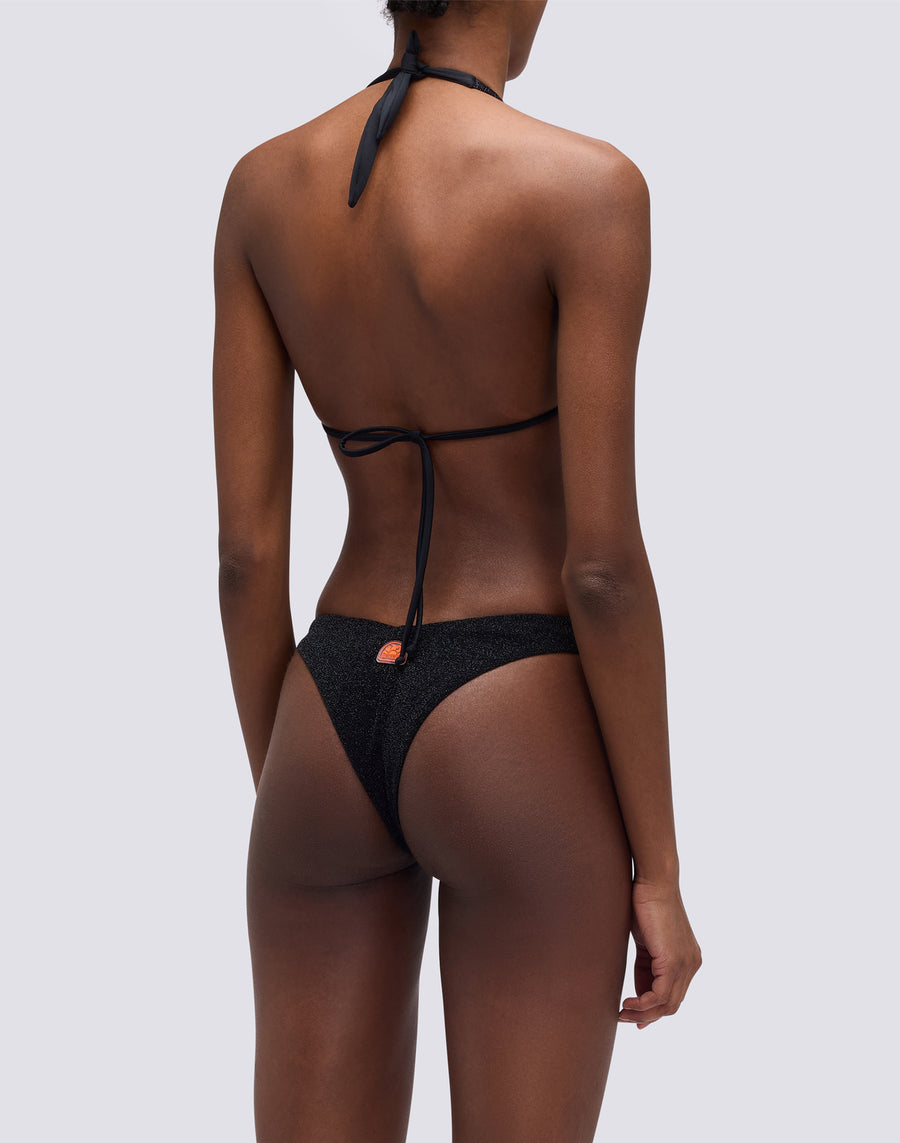 64% POLYESTER 36% ELASTANE Shiny lurex fabric, comfortable and with lining that guarantees a soft contact with the skin.