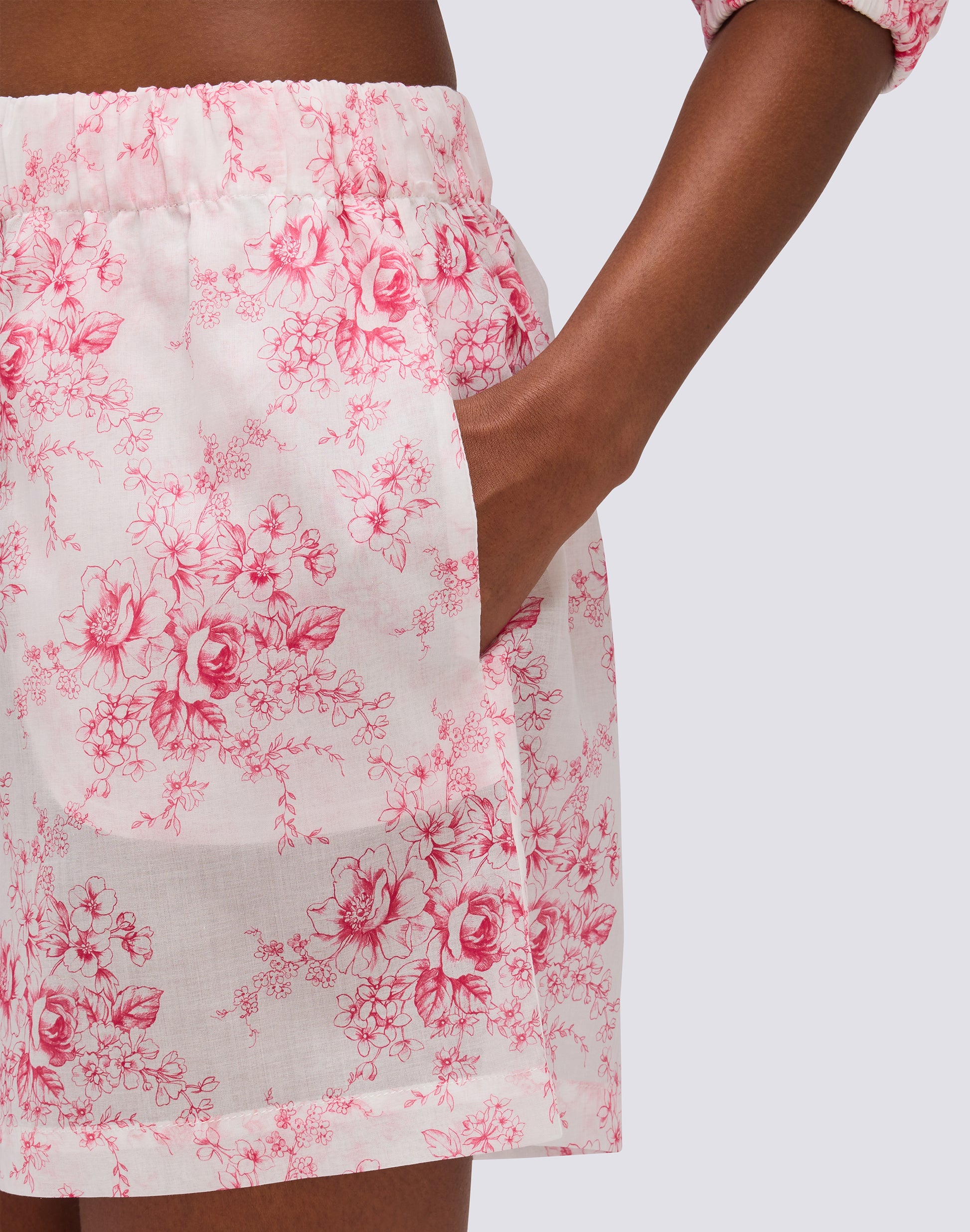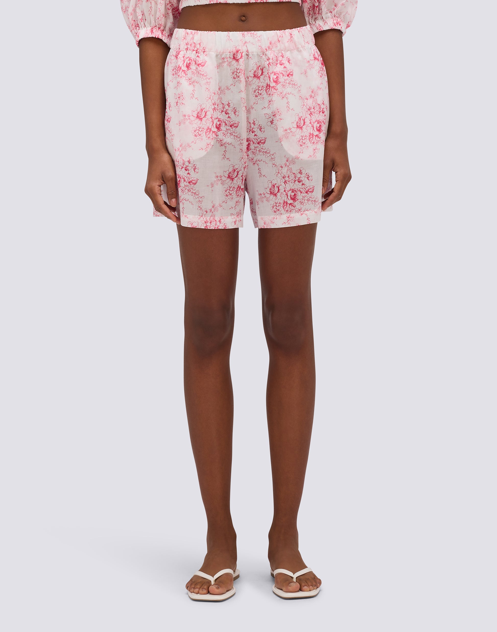 WOMEN'S ELASTICATED WAIST SHORTS WITH ROSE DE JOIE PRINT