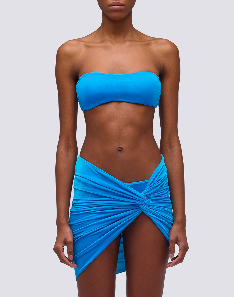 Short sarong in light velvet fabric, to be worn over the matching bikini set, for refined and unique beach outfits.