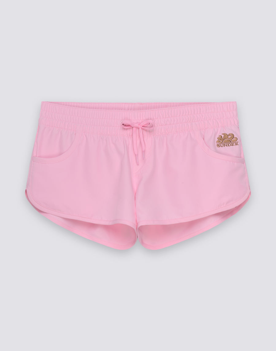 Made from eco-friendly Repreve® fabric, this women's shorts is available in various colors. The back features the unmistakable Sundek rainbow, for a unique style.