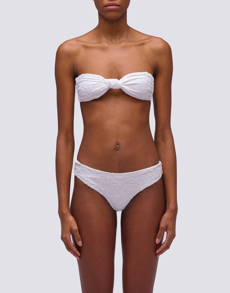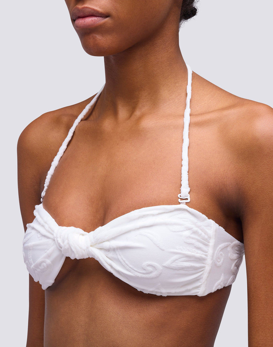 Adjustable terrycloth bandeau top with Hibiscus motif and centre front knot. Regular fit and adjustable neck ties. To be worn with matching briefs, sold separately.
