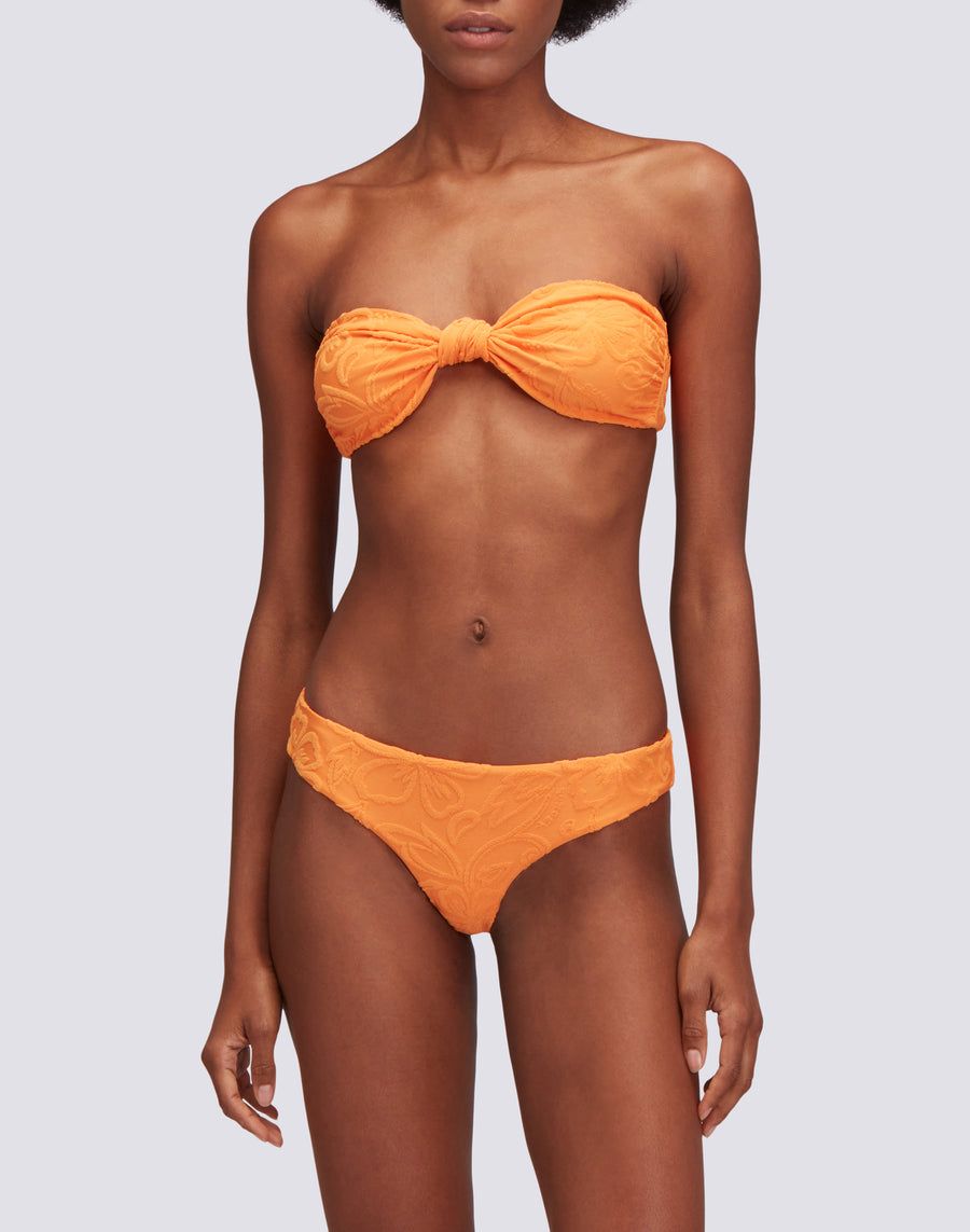 Adjustable terrycloth bandeau top with Hibiscus motif and centre front knot. Regular fit and adjustable neck ties. To be worn with matching briefs, sold separately.