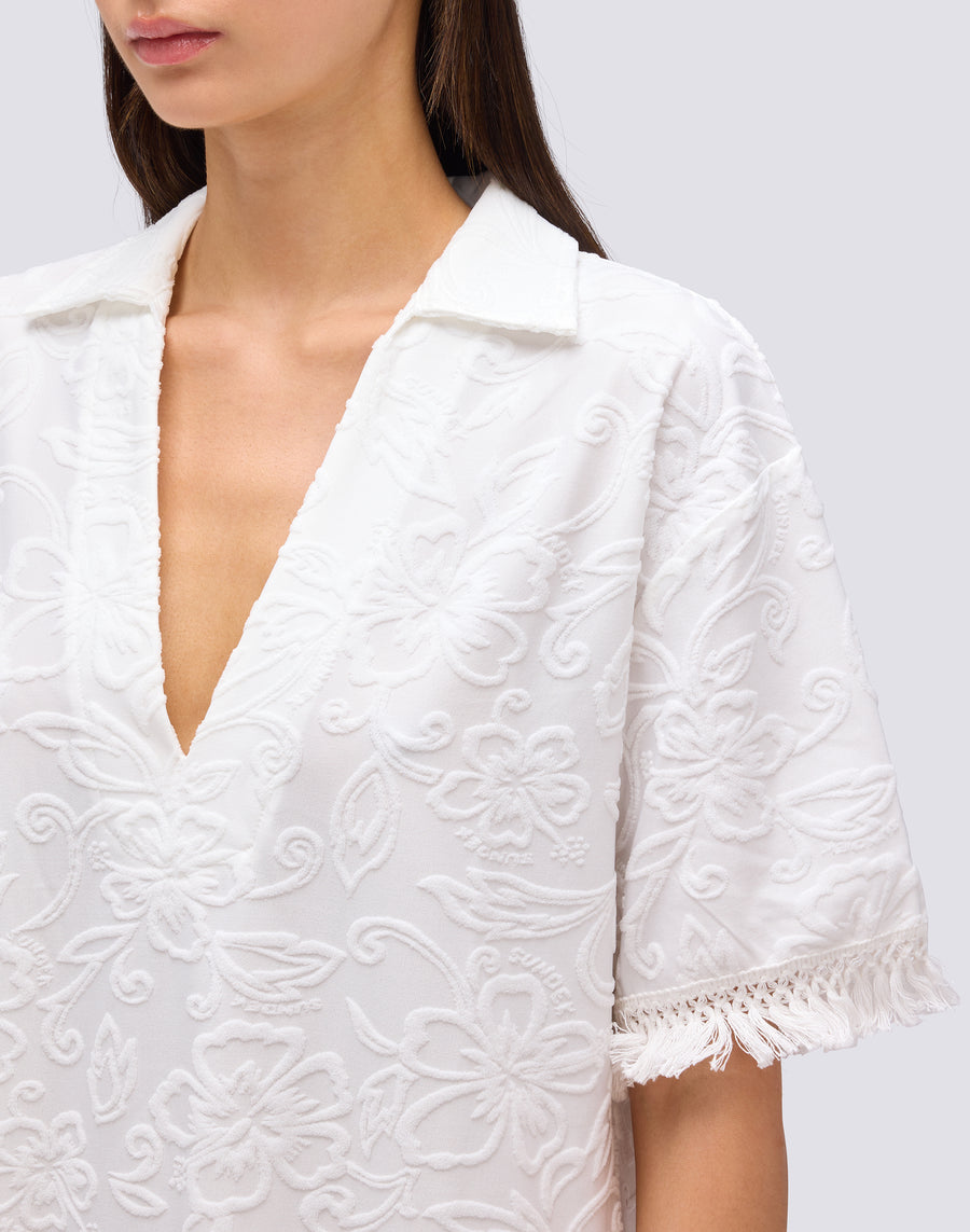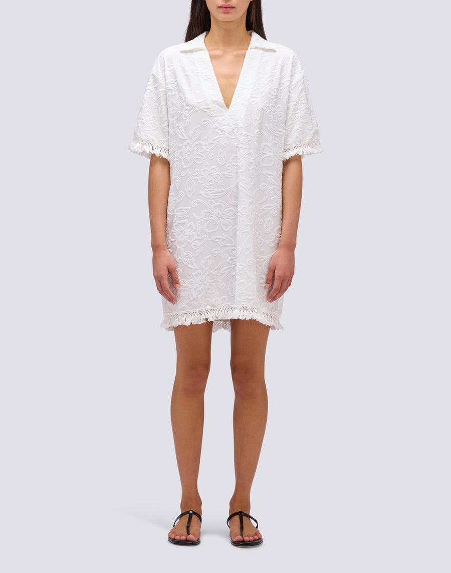 Short polo-style dress in jacquard terry with SK23 pattern. To be worn over various bikini sets from the same programme for coordinated and unique looks.
