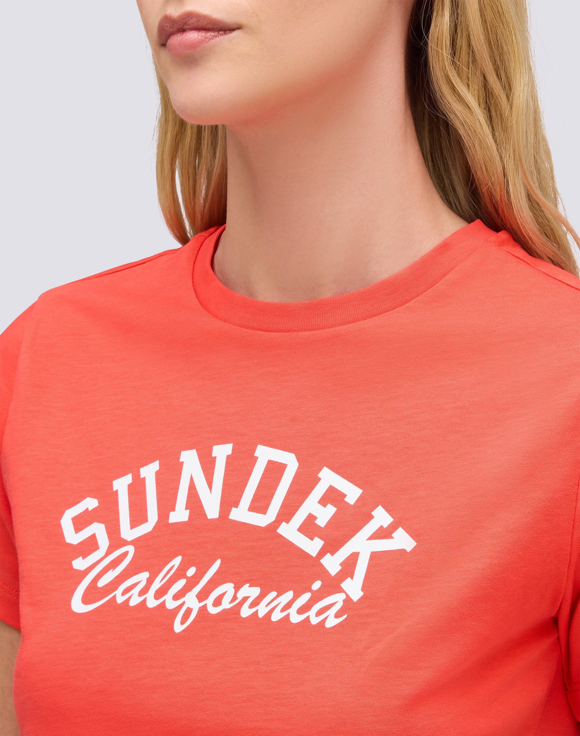 Women's cotton T-shirt with a cropped cut and vintage wash for a timeless look. The SUNDEK CALIFORNIA logo printed on the front represents the brand's identity and adds character to the garment. Perfect for those who love a casual but refined style, to be worn on its own with shorts or layered with other pieces from the collection. A versatile essential that captures the soul of Californian beach culture.