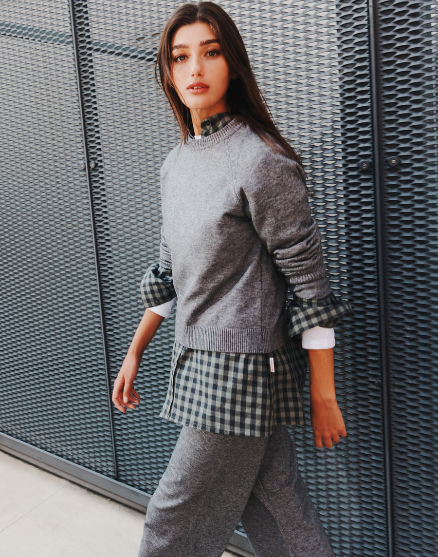 WOMEN'S CREW NECK KNITTED SWEATSHIRT WITH EMBROIDERED LOGO