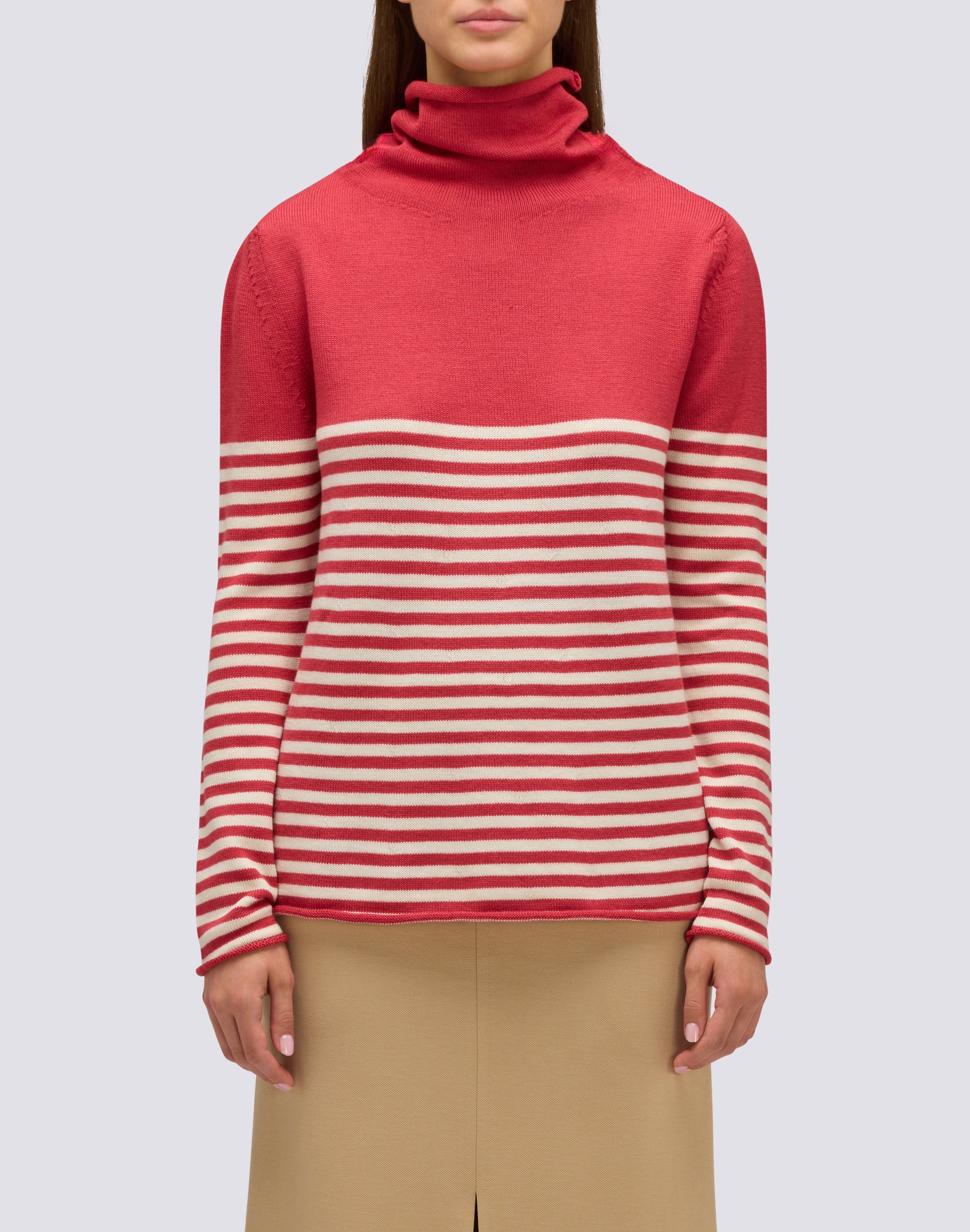WOMEN'S HIGH NECK SWEATER WITH STRIPED DETAIL