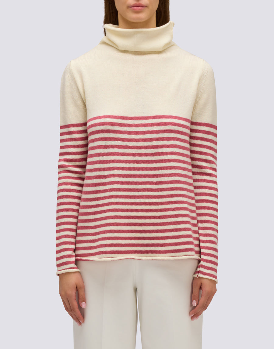 WOMEN'S HIGH NECK SWEATER WITH STRIPED DETAIL