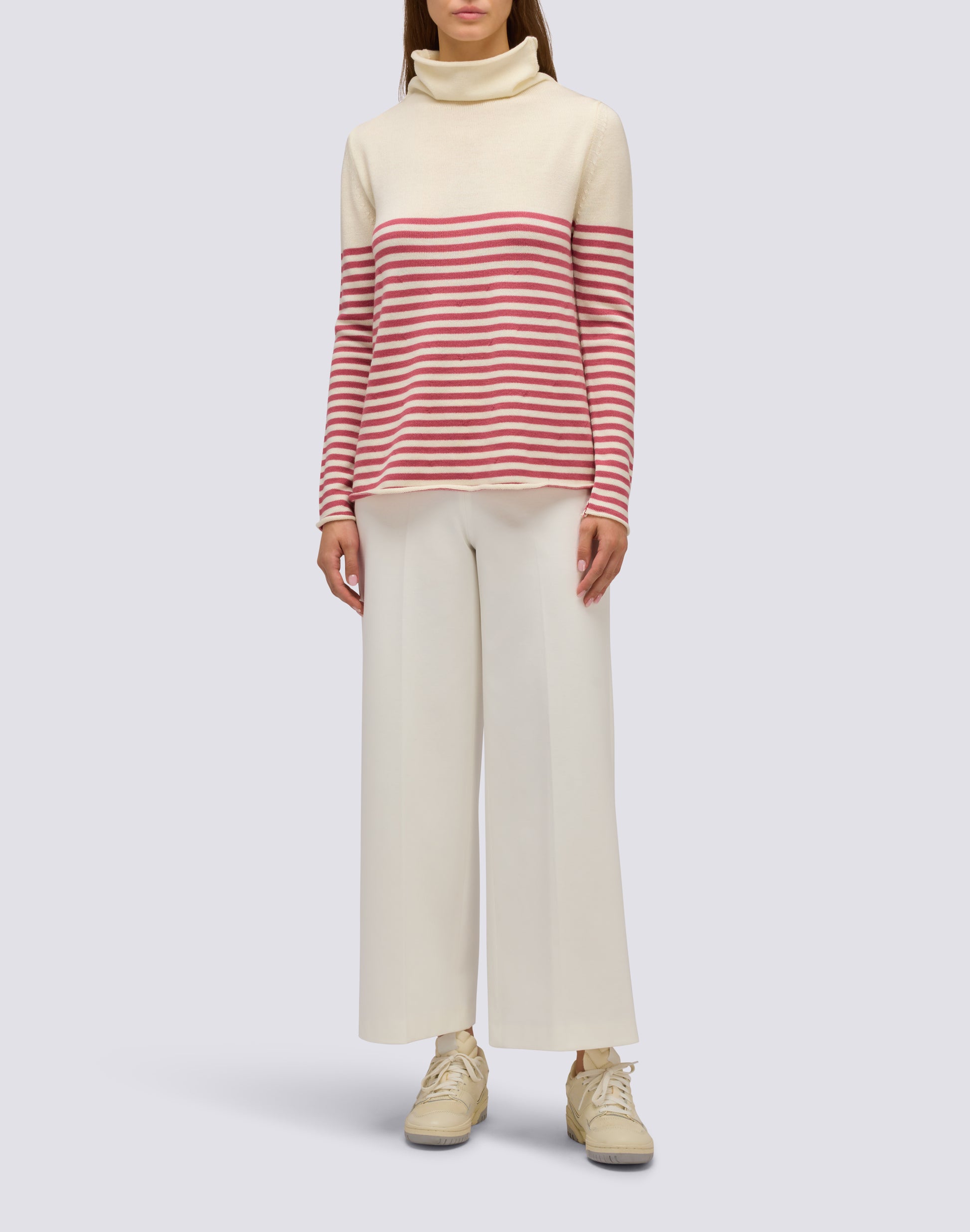 This women's merino wool turtleneck sweater offers warmth and style for any occasion. The striped detail adds a refined and modern touch, perfect for enhancing your look with ease and comfort.