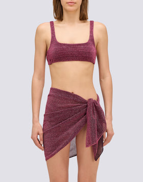The short lurex pareo is the perfect accessory for a sparkling and glamorous beach look. Made of stretch fabric, it fits perfectly and can be easily paired with your favorite bikini. Add a touch of light to your days at the beach with this pareo.